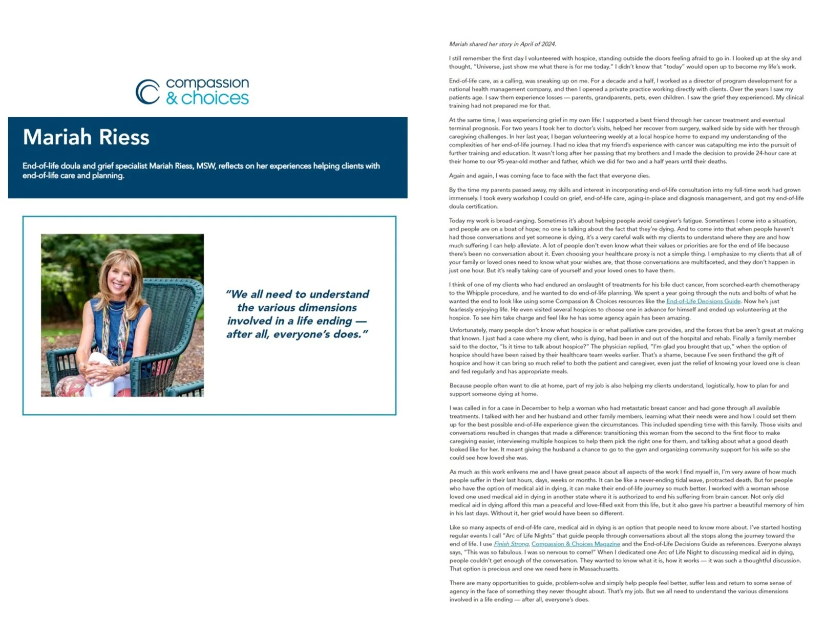Compassion and choices website: April 2024